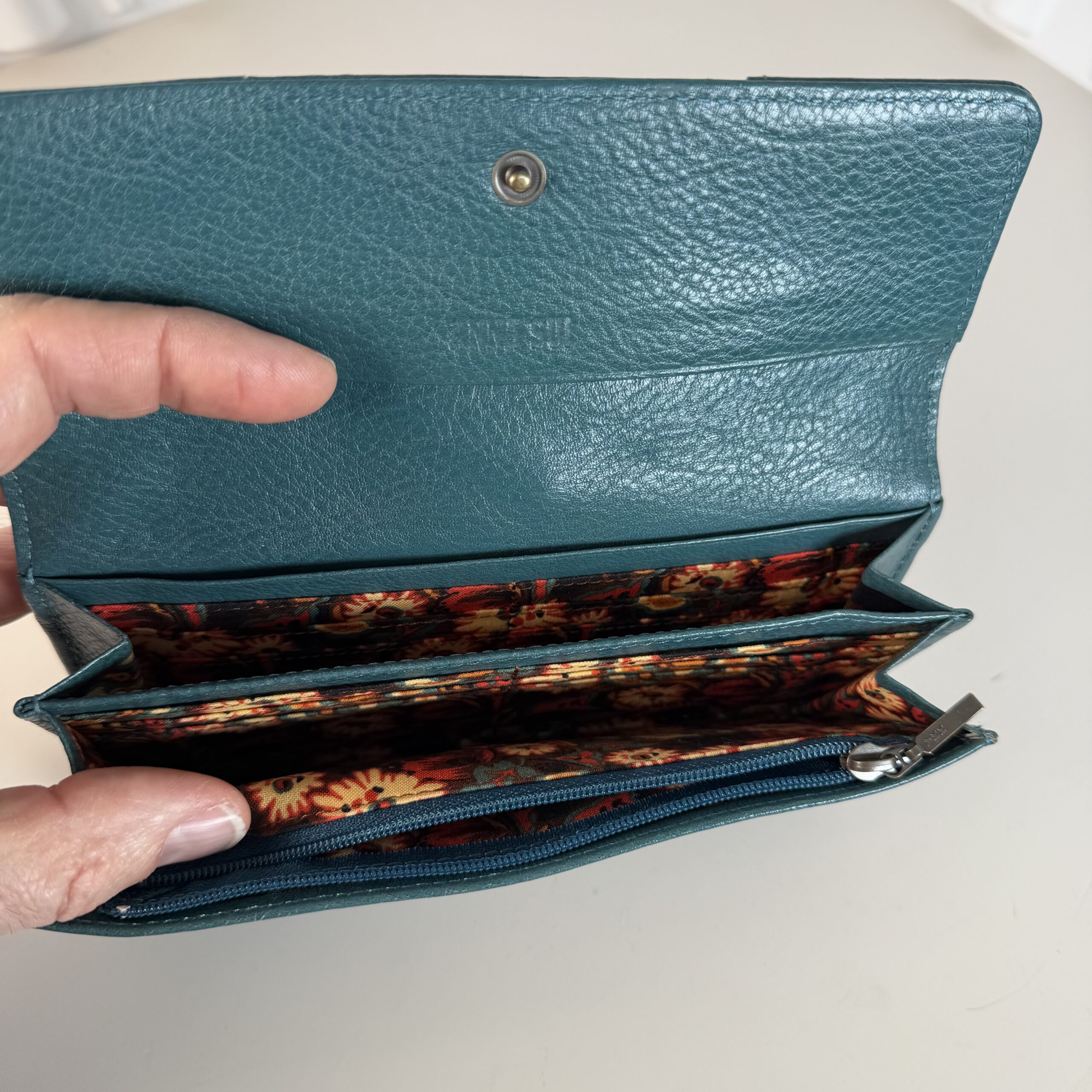 Anna Sui Vintage Rose Collection Long Wallet in Teal/Ivy Green