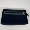 - Interior Pocket:Â Black leather-lined interior features one main compartment and one flat wall pocket.