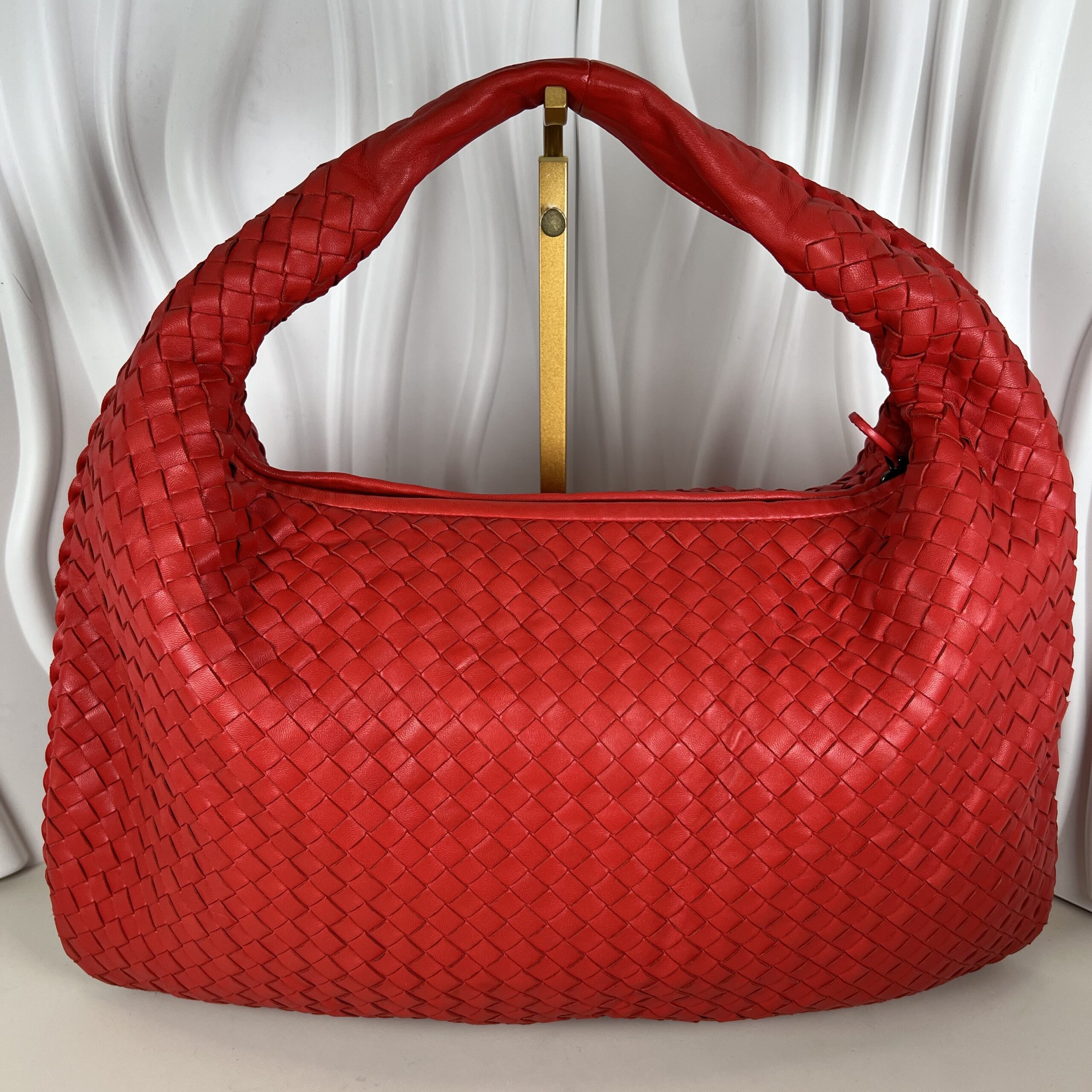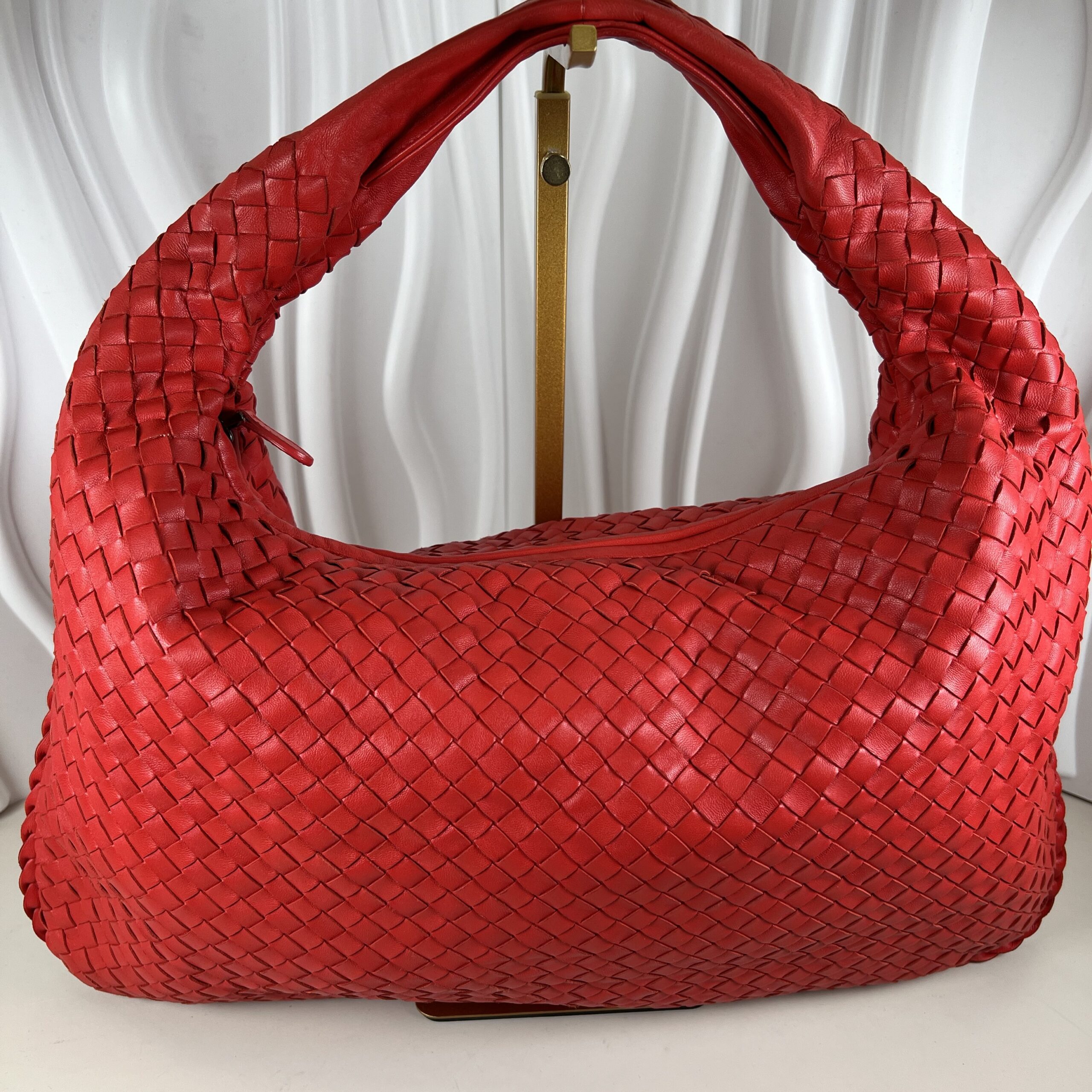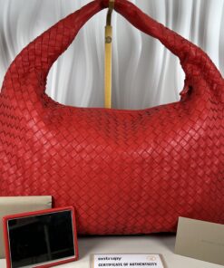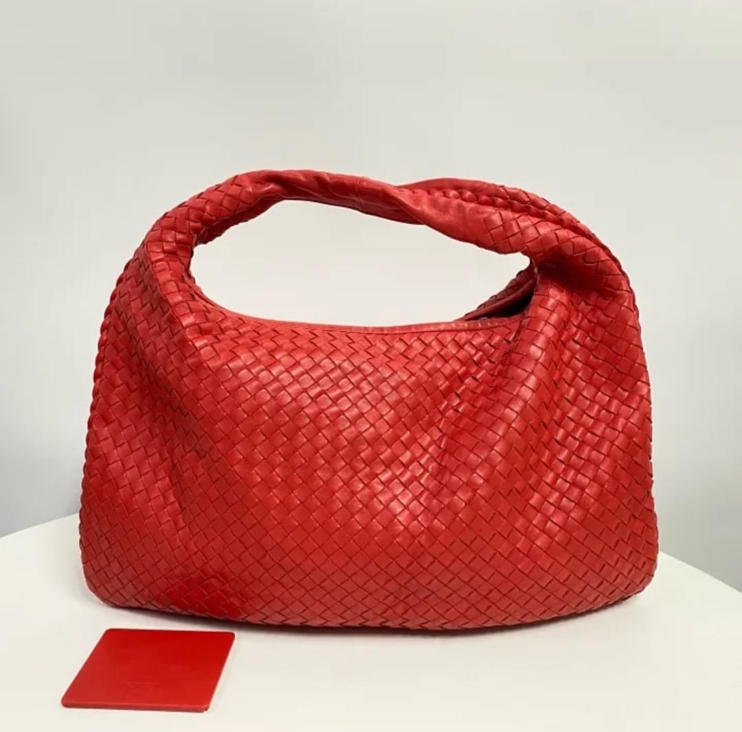 Experience the pinnacle of Italian craftsmanship with this iconic hobo bag. Meticulously handcrafted using Bottega Veneta’s signature Intrecciato weave, this piece is fashioned from buttery-soft nappa leather in a vibrant, statement-making red.