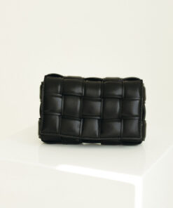 This item is a Bottega Veneta Padded Cassette bag in black. It features the brand’s iconic amped-up Intrecciato weave in a padded interpretation, creating a soft, voluminous “puffy” aesthetic.