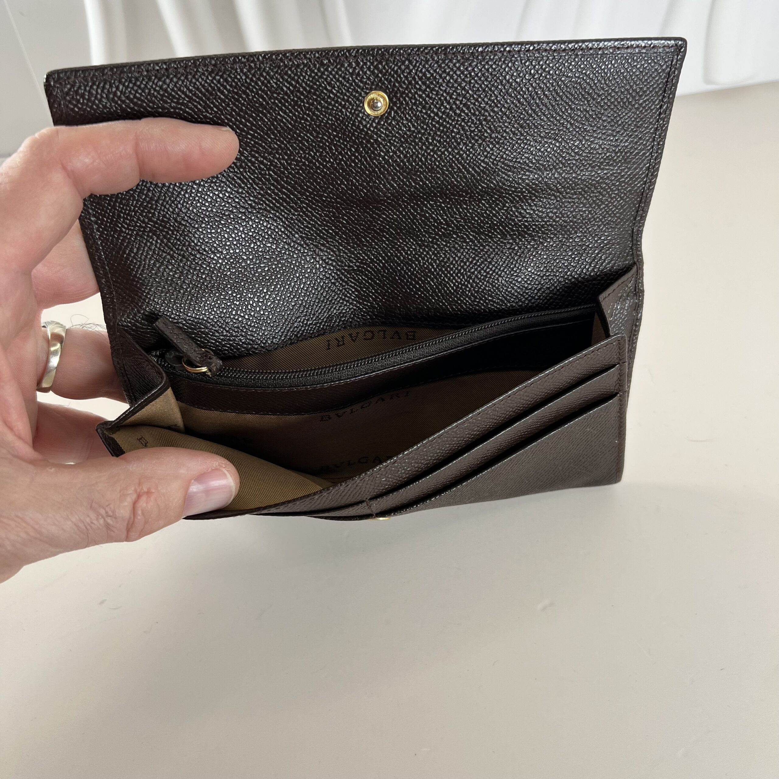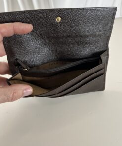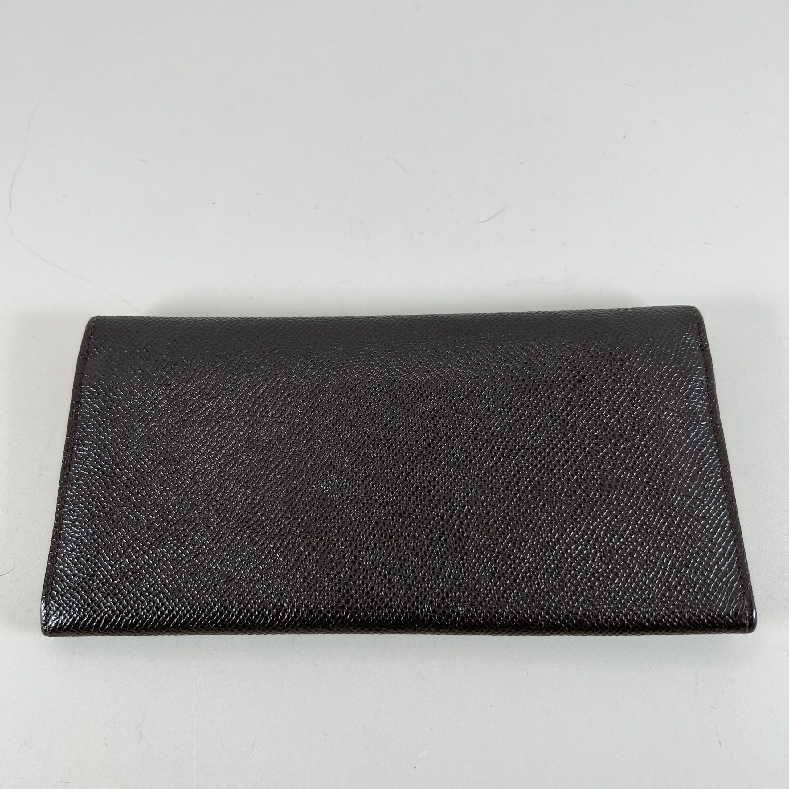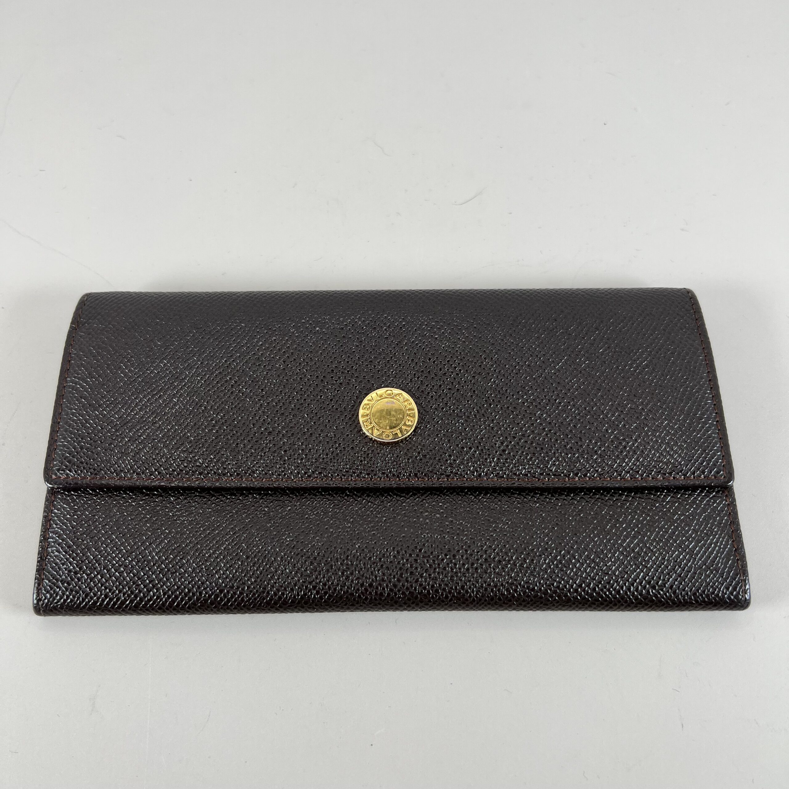 Bvlgari Dark Brown Textured Leather Long Wallet with Gold-Tone Logo Snap Closure