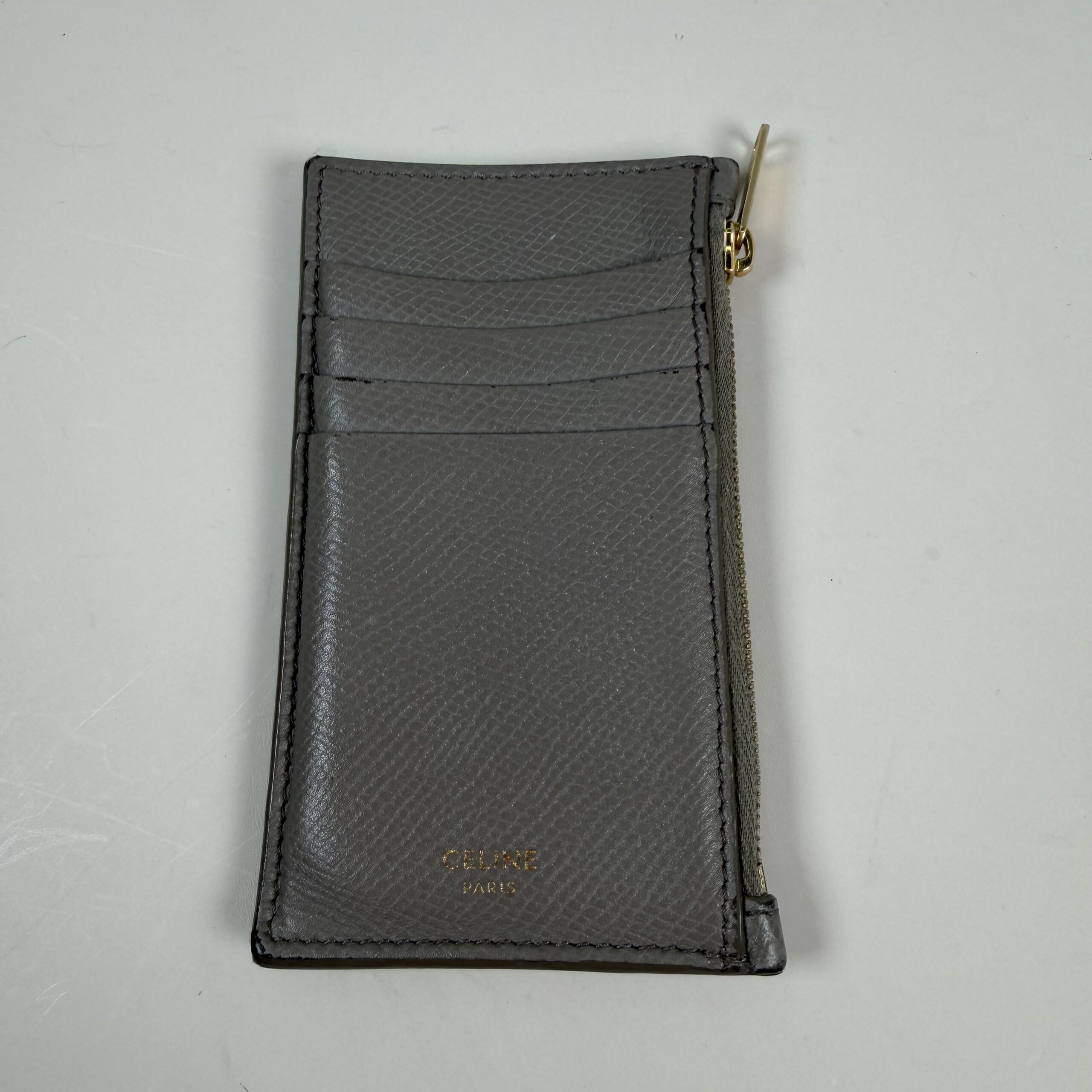 Celine Compact Zipped Card Holder is a sophisticated and practical accessory, ideal for those who prefer a minimalist everyday carry. Crafted from premium grained calfskin leather in a versatile Pebble (Grey) shade, it features a slim silhouette that easily fits into smaller bags or pockets.
