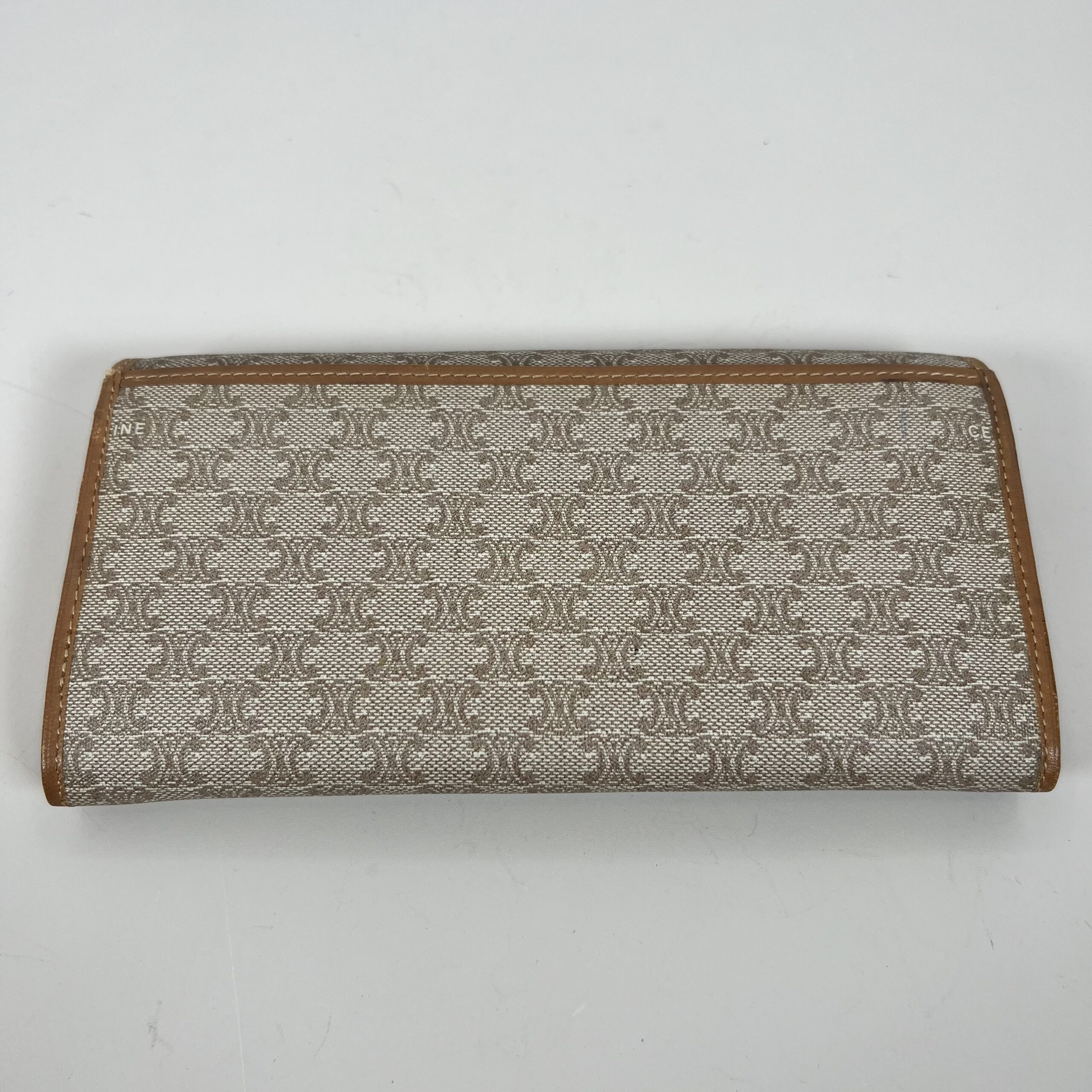 - Hardware: The gold-tone hardware on the Triomphe logo and any internal clasps may show slight tarnish or light scratches.
