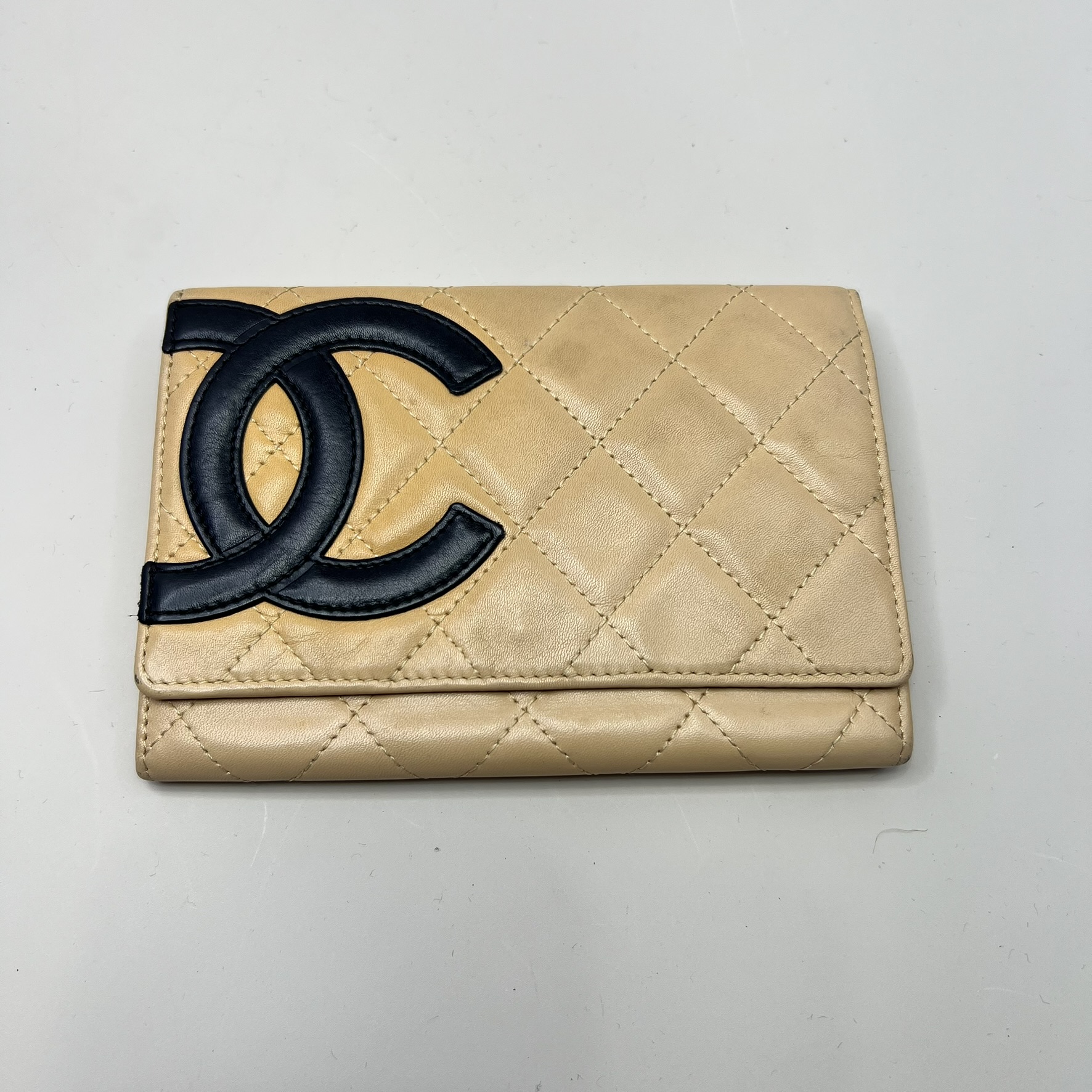 - Exterior:Â The beige leather shows signs of wear consistent with a pre-owned item, including some light dirt/discoloration on the quilted exterior and edges (as seen in images). The prominent black CC logo also shows minor signs of use.