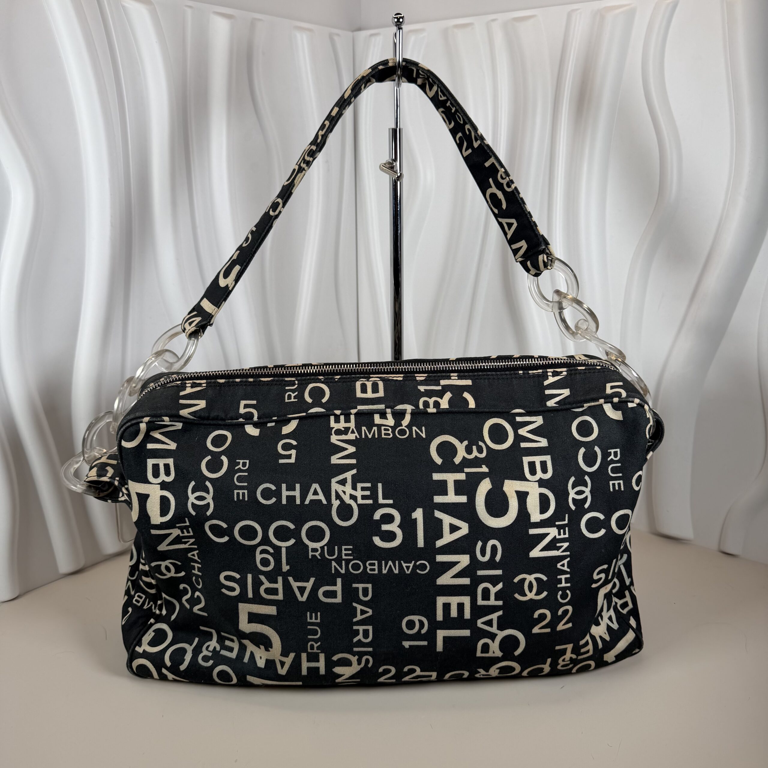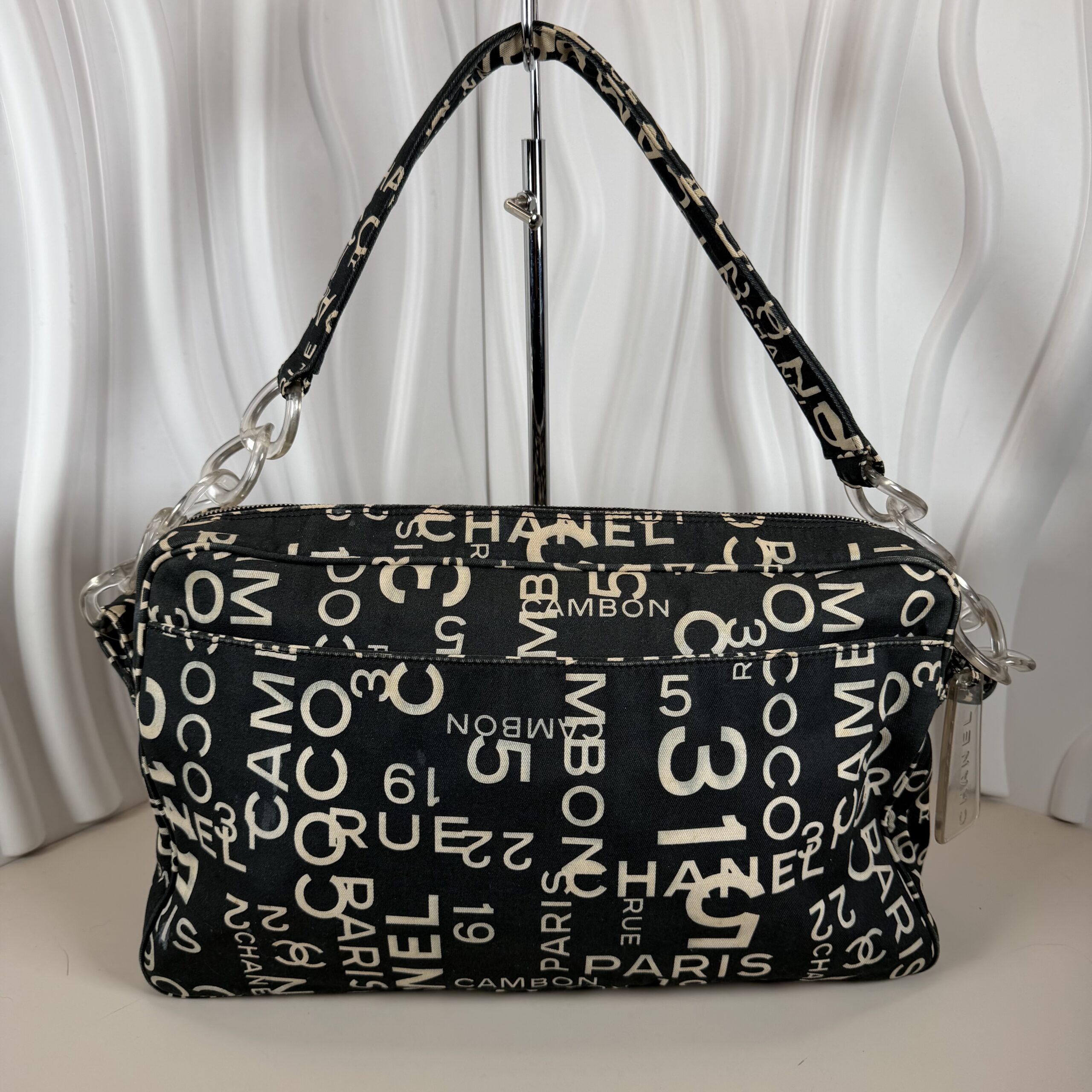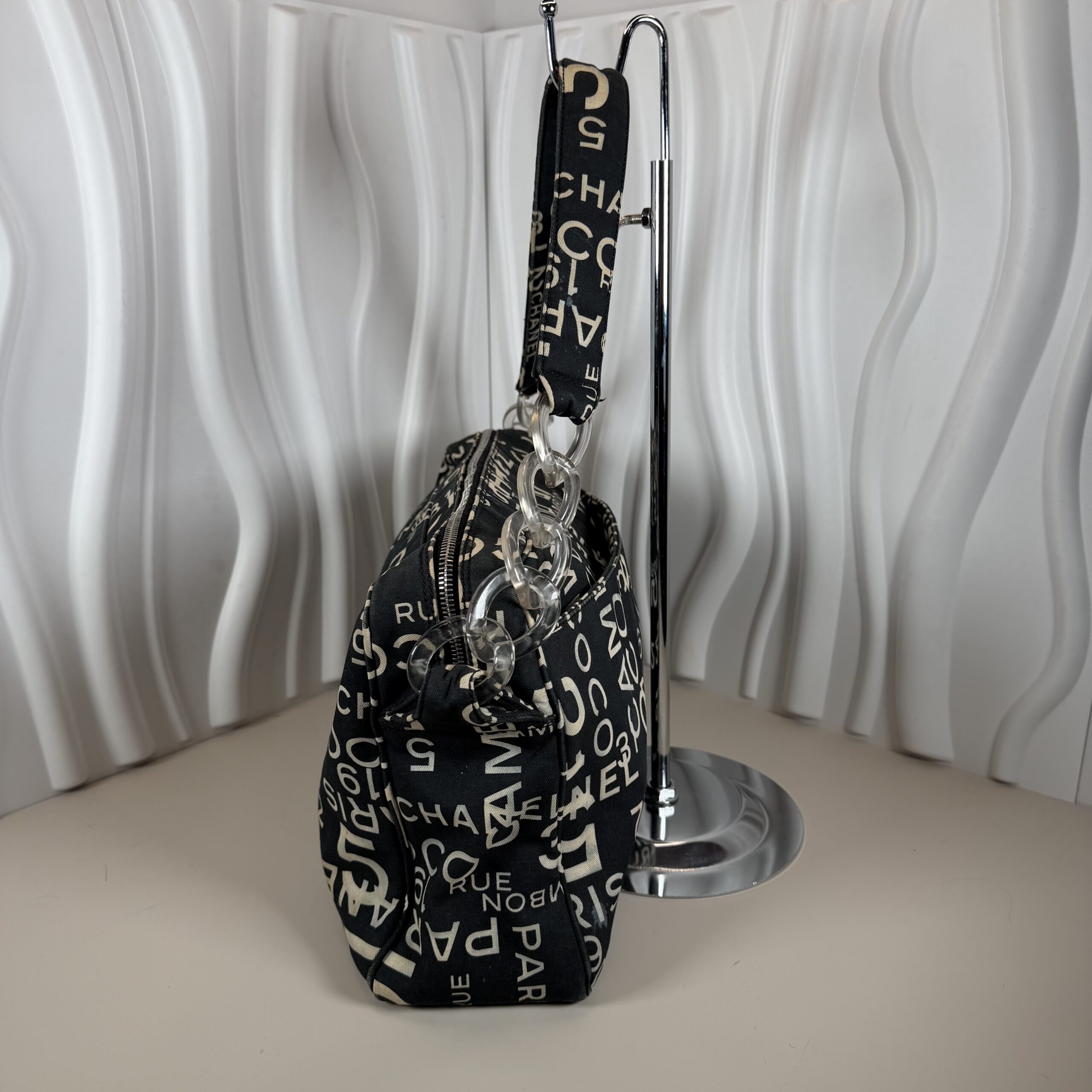Authentic Chanel Rue Cambon Typography Canvas Shoulder Bag