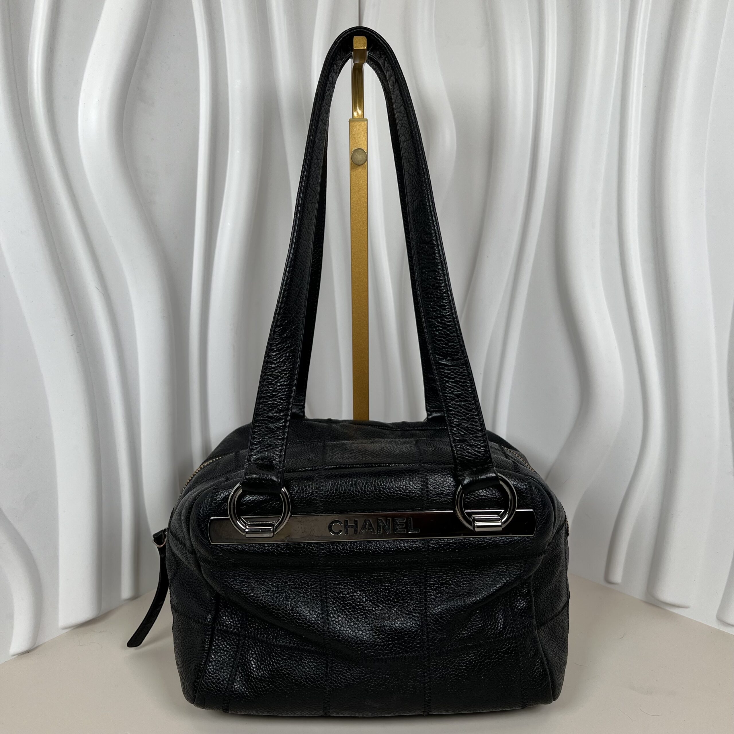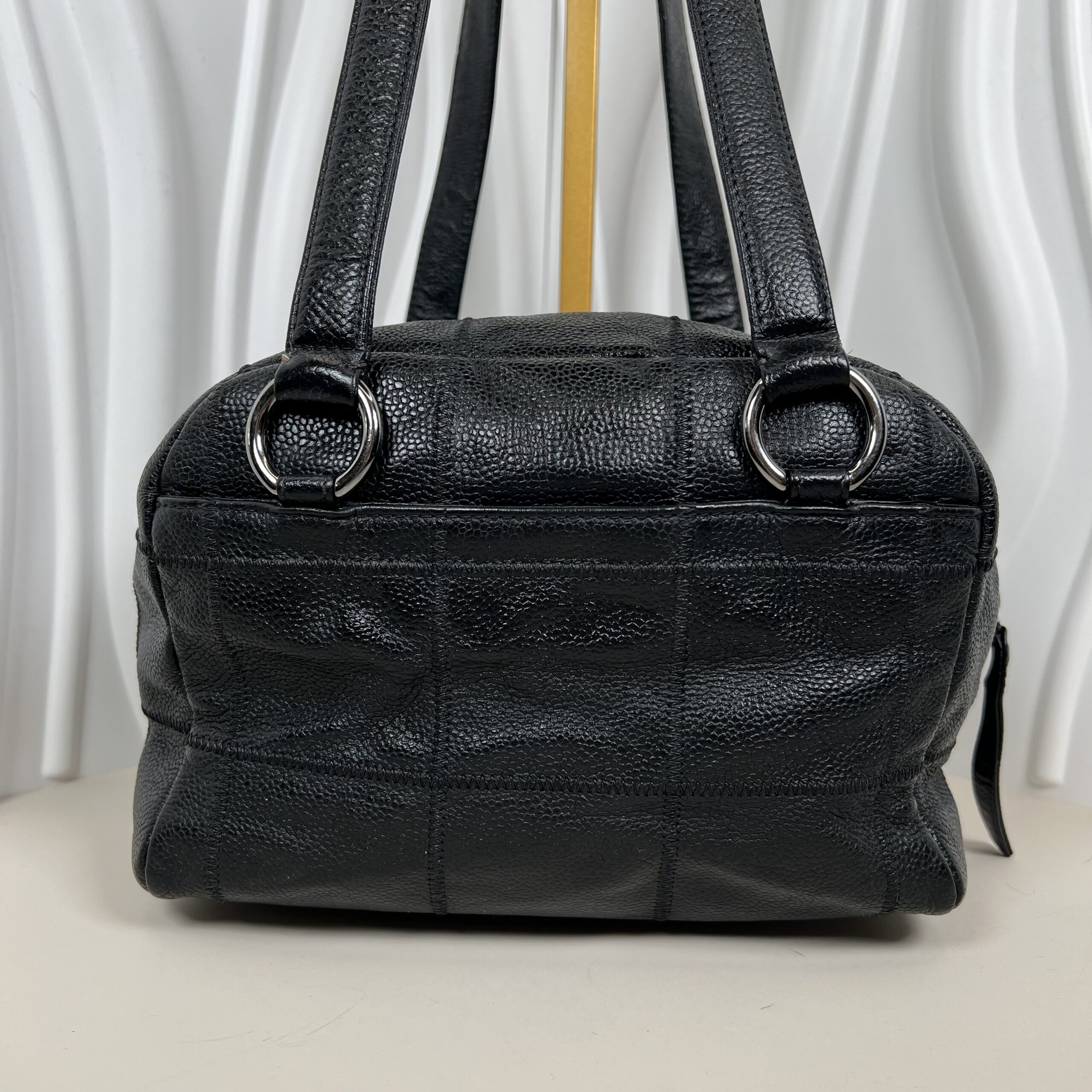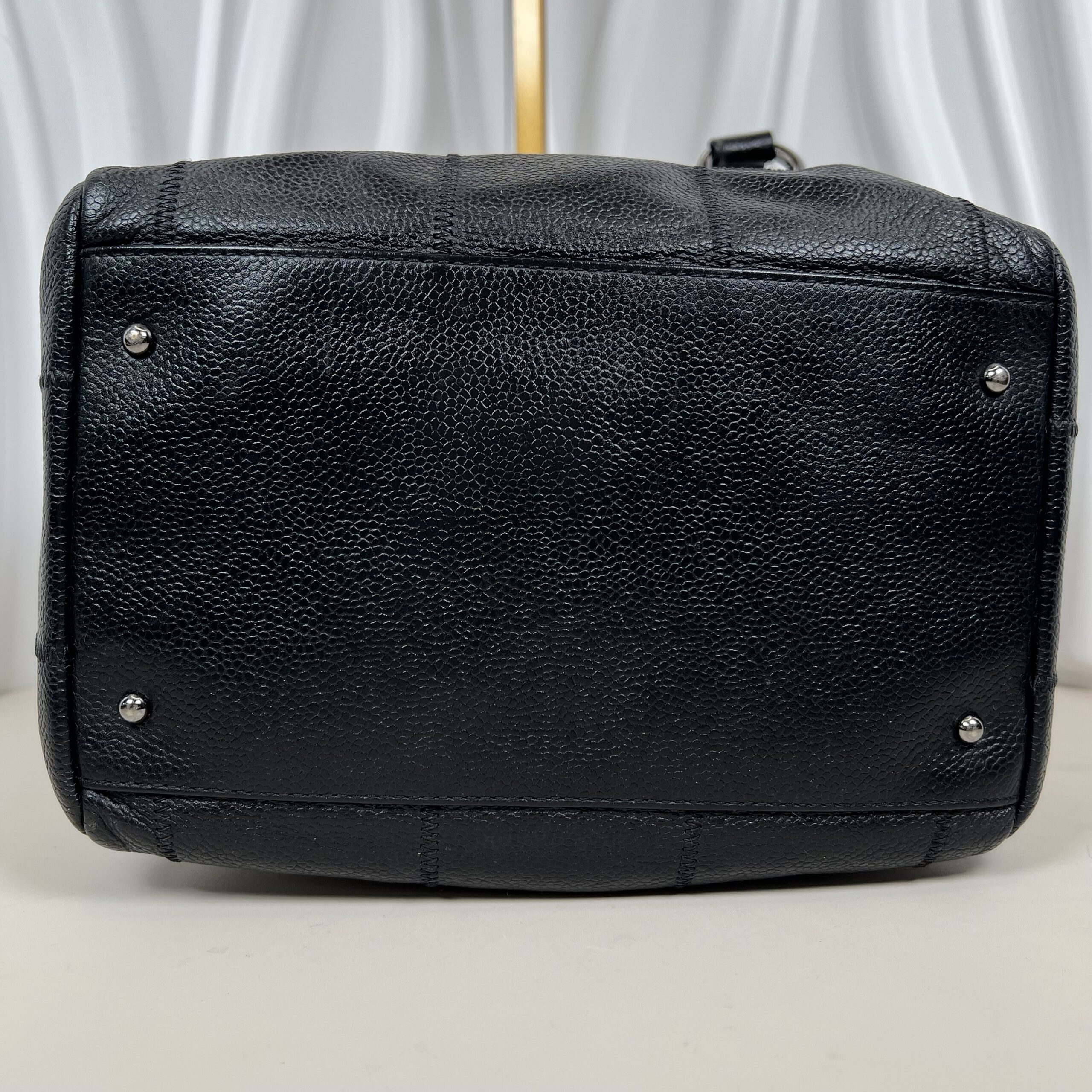 Pre-Owned Authentic Chanel Square Stitch Bowler Bag – hologram intact, crafted from luxurious black caviar leather