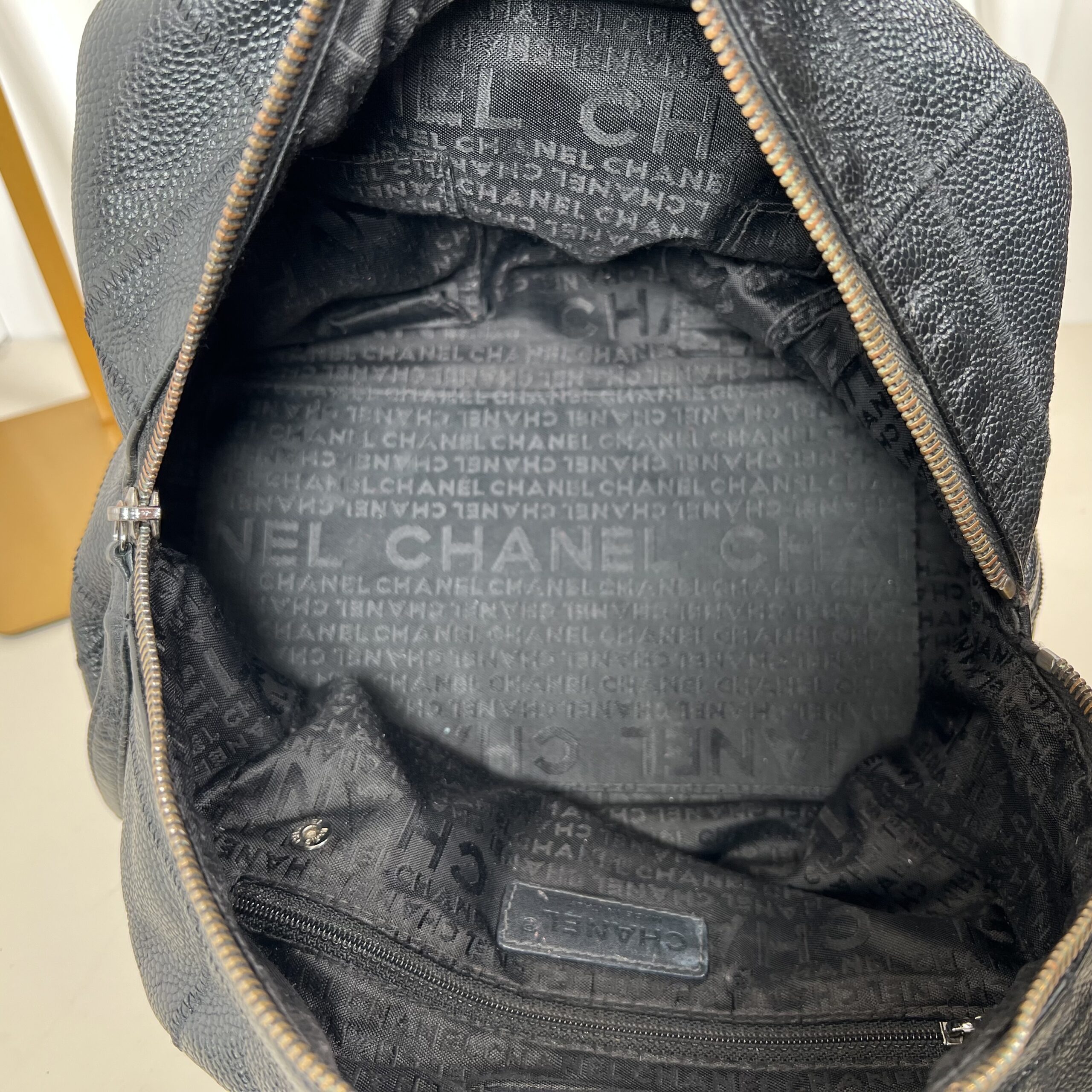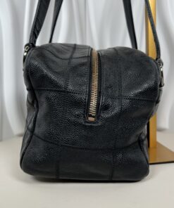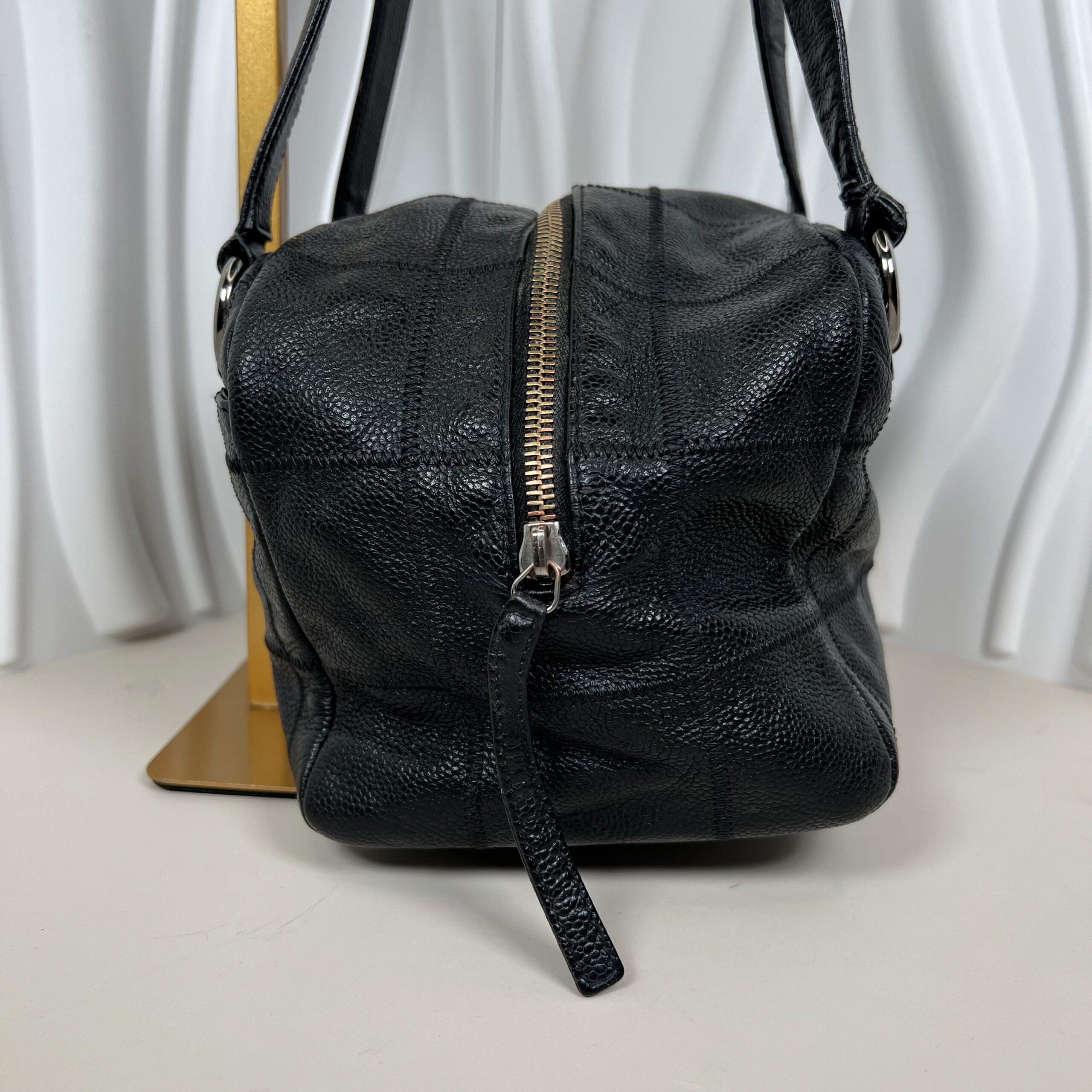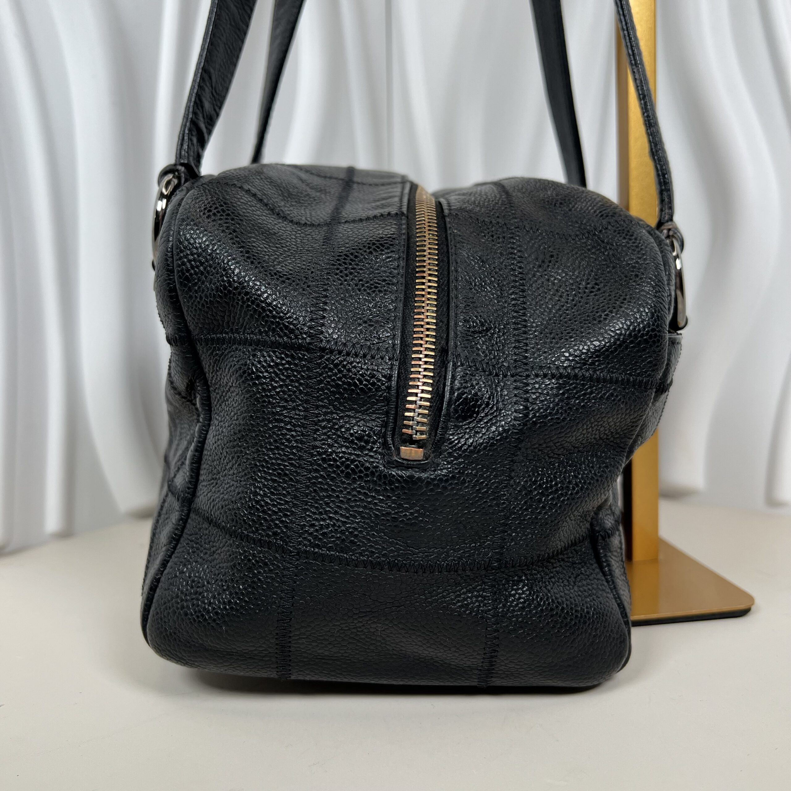 Pre-Owned Authentic Chanel Square Stitch Bowler Bag – hologram intact, crafted from luxurious black caviar leather