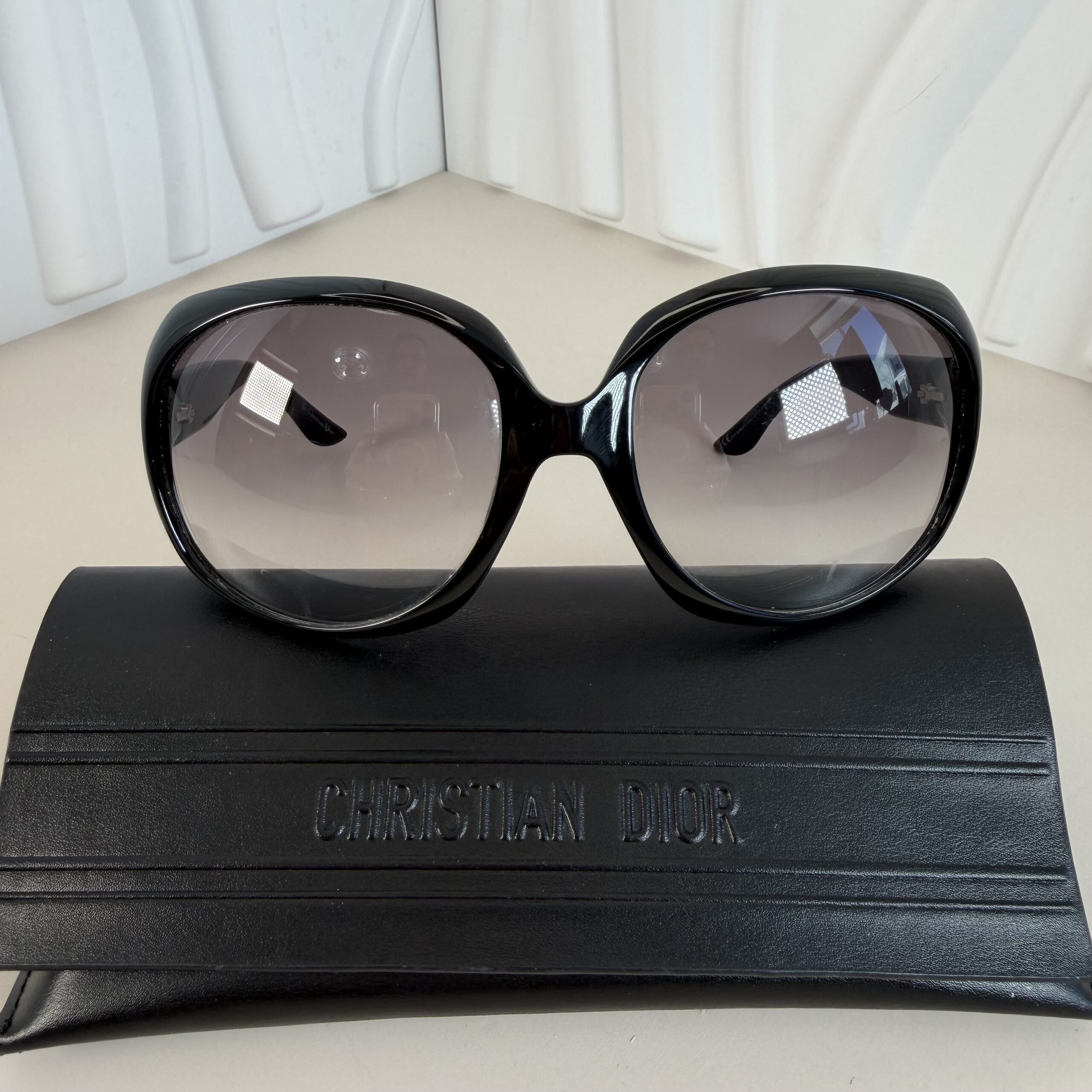 Pre-owned Christian Dior Glossy 1 Oversized Black Sunglasses w/ Case