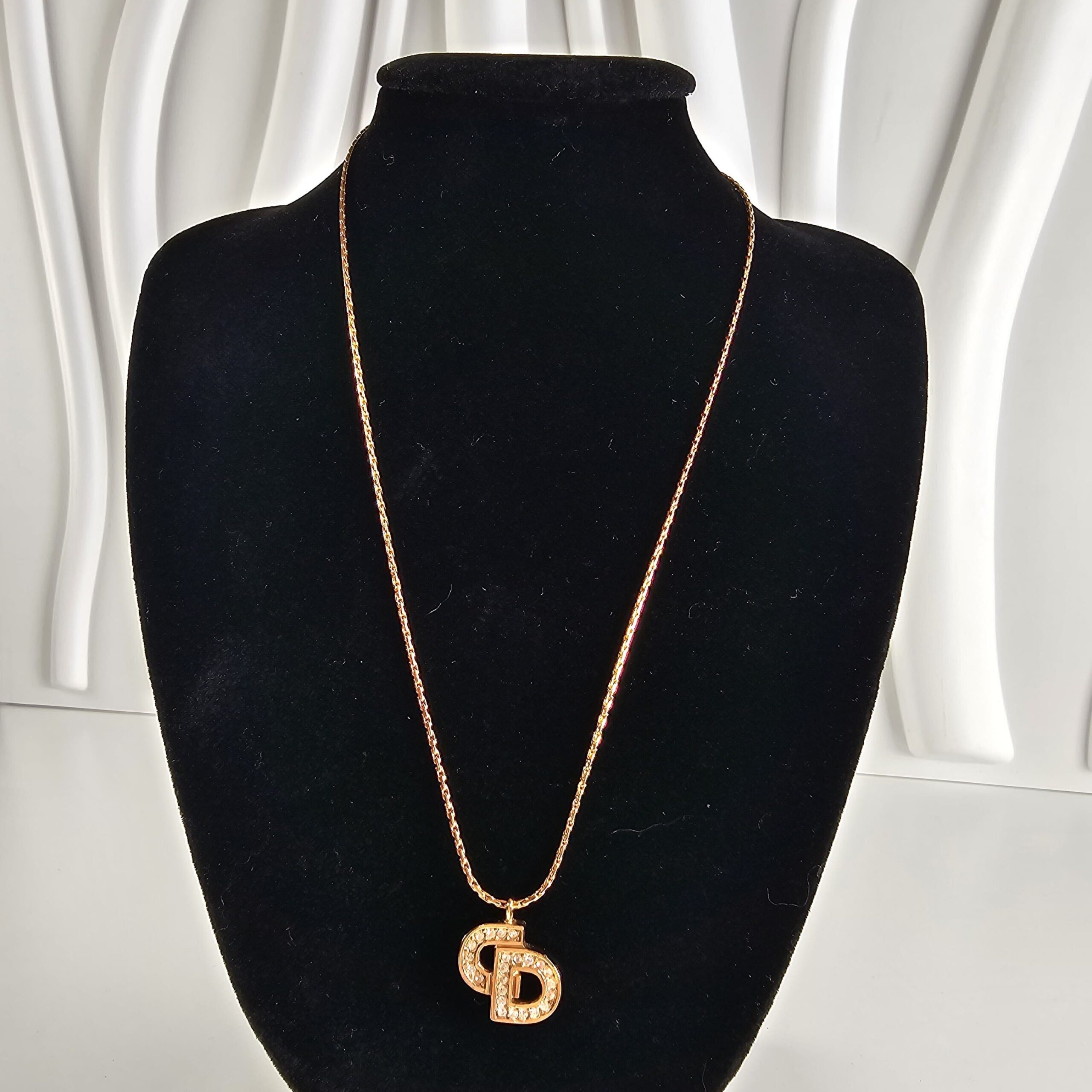 Christian Dior Gold-Finish Metal Necklace with a Crystal-Embellished CD Logo Pendant