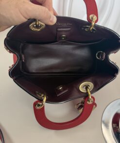 Christian Dior Mini Diorissimo Tote in Red Grained Leather
