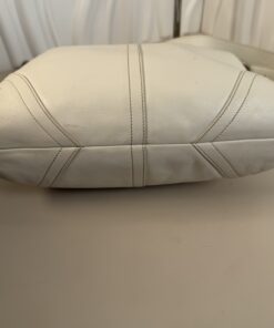 This elegant Coach bag is crafted from high-quality white pebbled leather. It features the iconic Soho buckle detail on a magnetic front flap for secure and easy access.