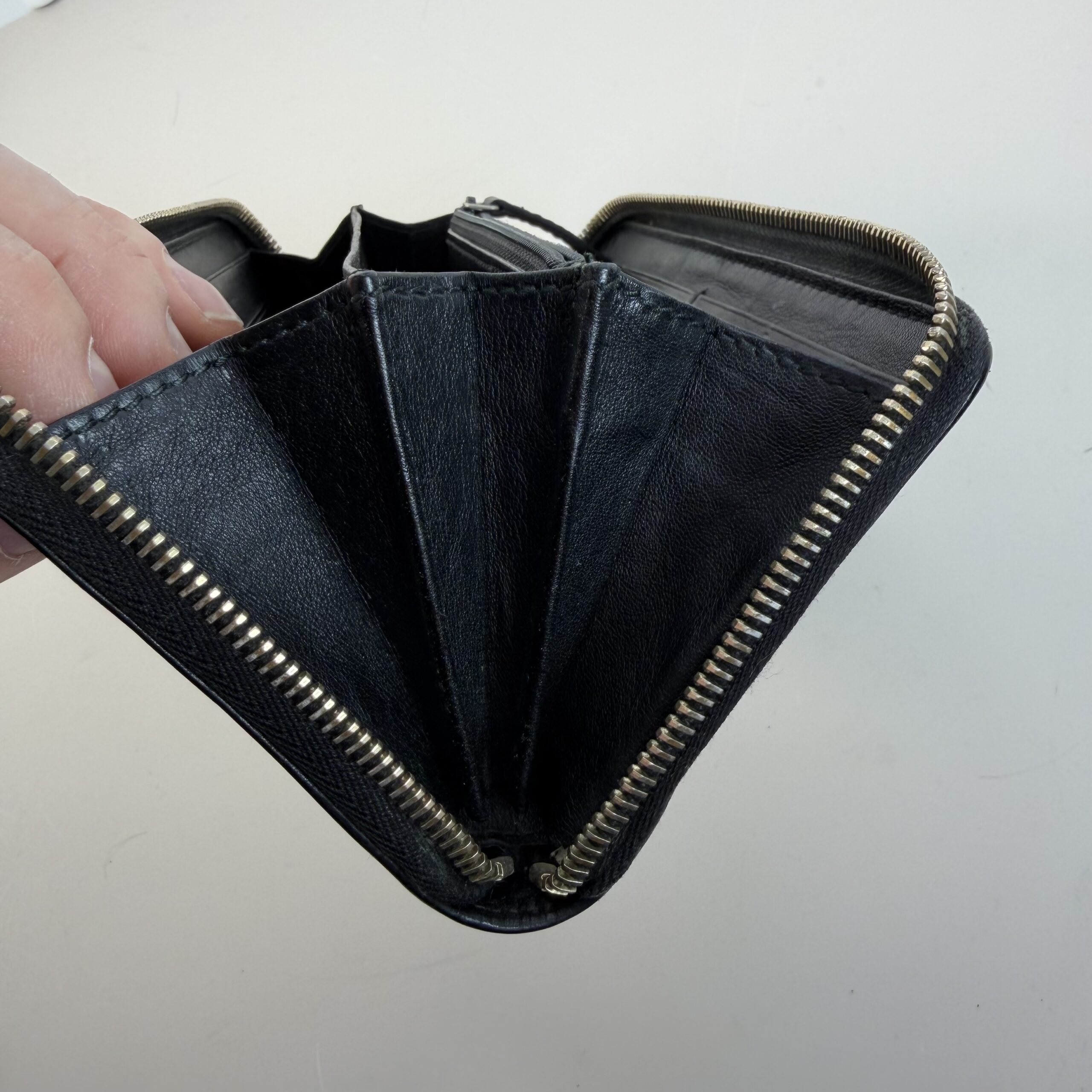 This pre-owned wallet shows signs of use consistent with a vintage or well-loved luxury item.