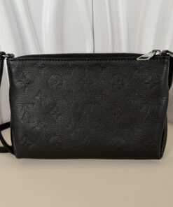 - Material:Â Monogram Empreinte embossed grained cowhide leather in black (Noir) with a textile interior lining.