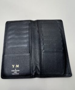 Elevate your essentials with this sophisticated and functional Louis Vuitton Brazza wallet in durable black Taiga leather. Renowned for its elegant simplicity and robust construction, the Brazza is one of Louis Vuitton’s most iconic and practical designs. This pre-owned wallet has been gently used and meticulously cared for. The exterior black Taiga leather remains in good condition, showcasing its subtle grain and matte finish with some signs of wear. The interior compartments are fully fuctional, ready to organize your life.