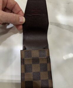 This timeless and sophisticated Louis Vuitton accessory is crafted in the brand’s iconic Damier Ebene coated canvas, featuring a classic checkerboard pattern. Designed originally as a stylish way to carry cigarettes, its compact size and durable construction make it a versatile pouch for modern essentials such as credit cards, business cards, lipstick, or other small items.