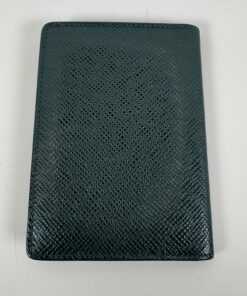 This Authentic Louis Vuitton accessory is crafted from the brand’s signature Taiga leather, known for its durable cross-grain texture and understated luxury. Finished in a deep dark green tone, this piece features a slim, structured silhouette with a subtle Louis Vuitton logo stamp at the lower corner, offering a refined and minimalist aesthetic.