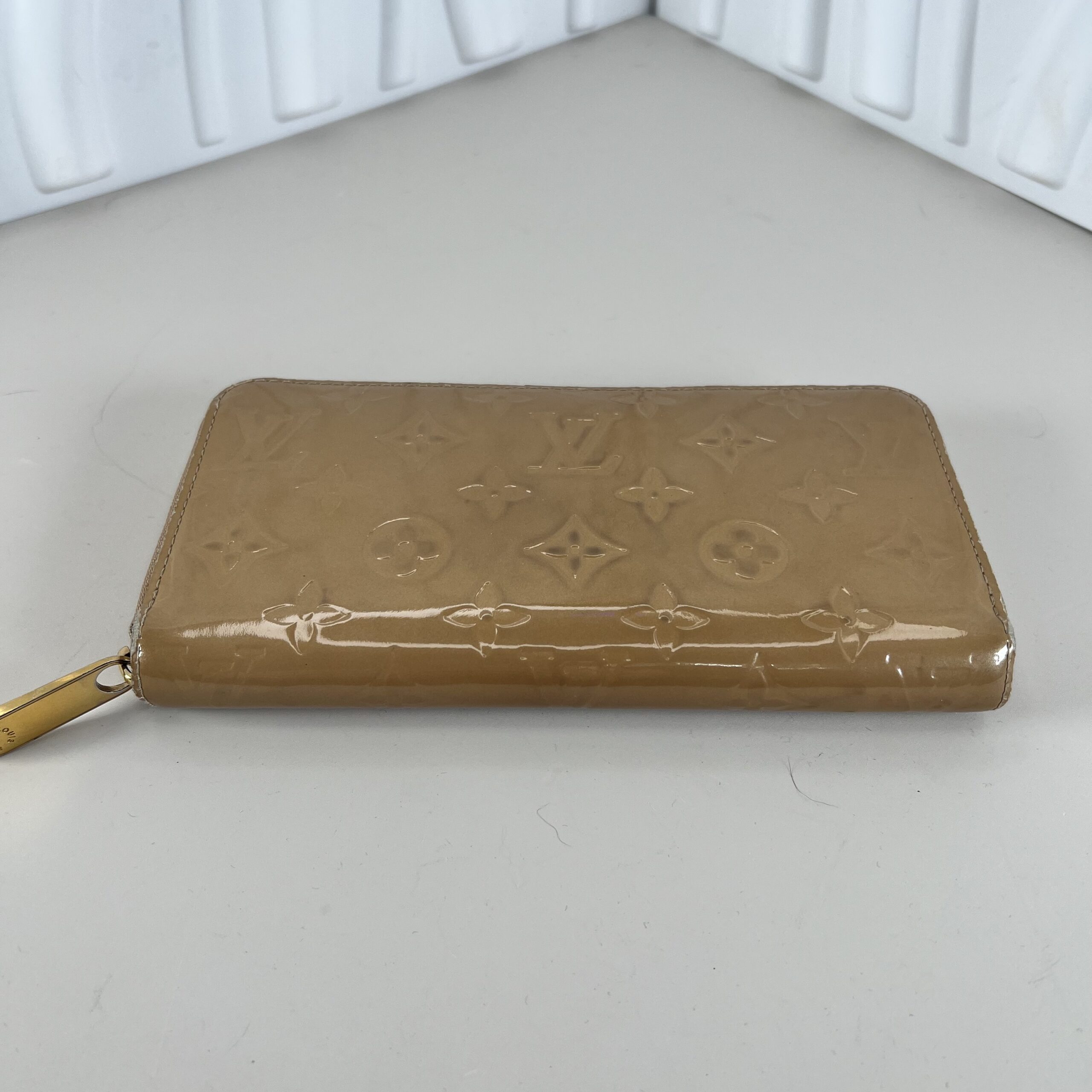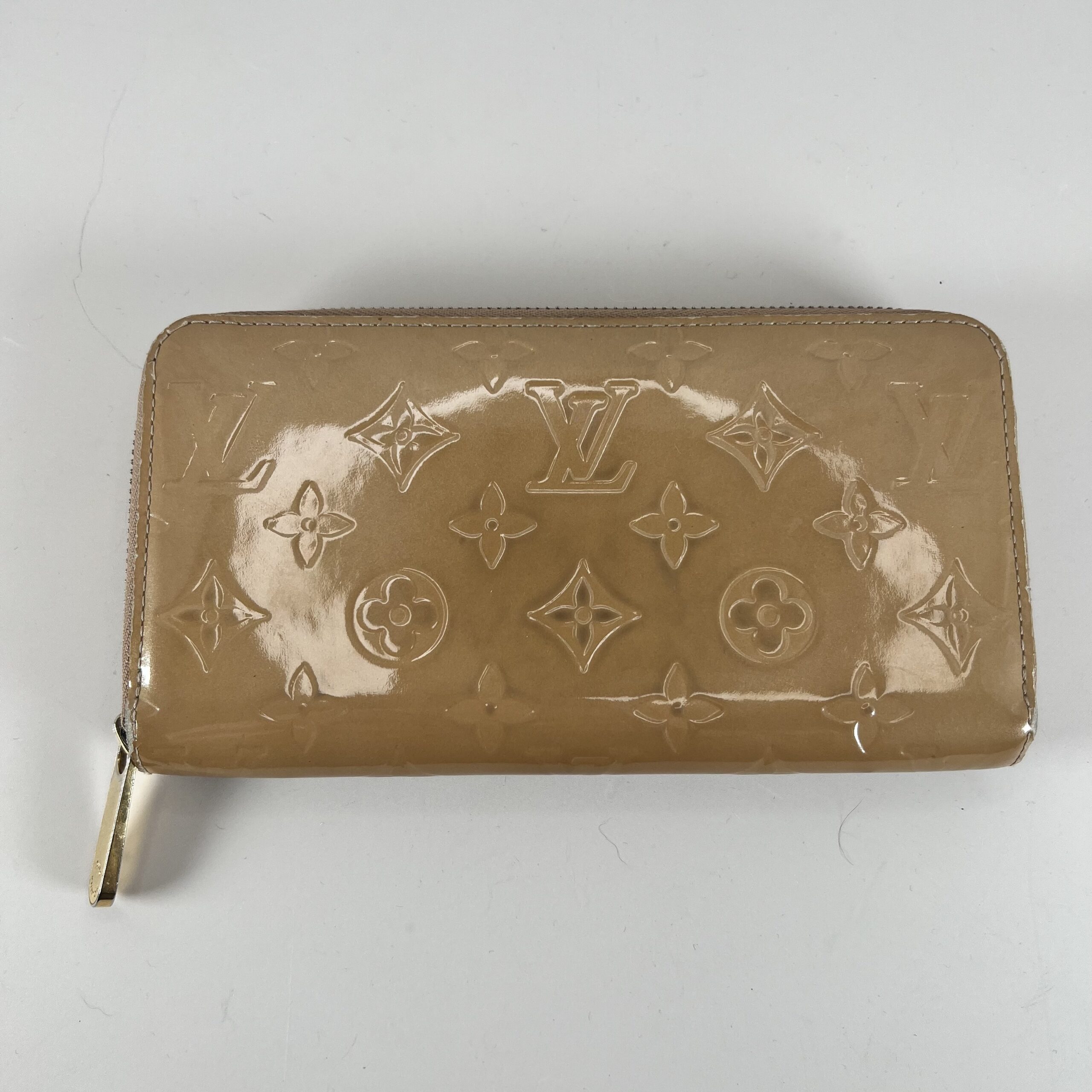 Authentic Louis Vuitton Monogram Vernis Zippy Wallet in Beige / Nude