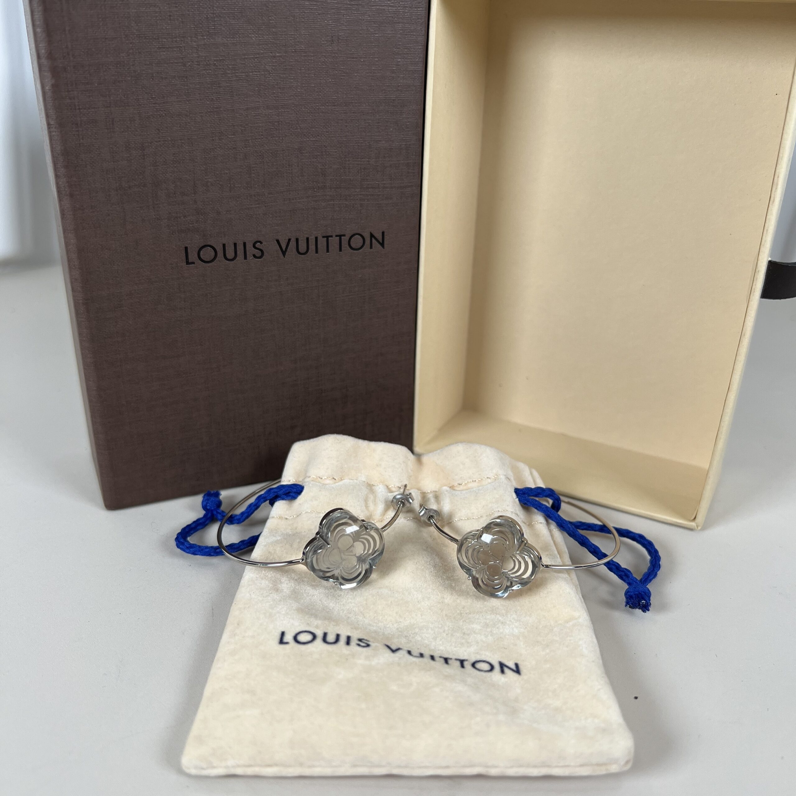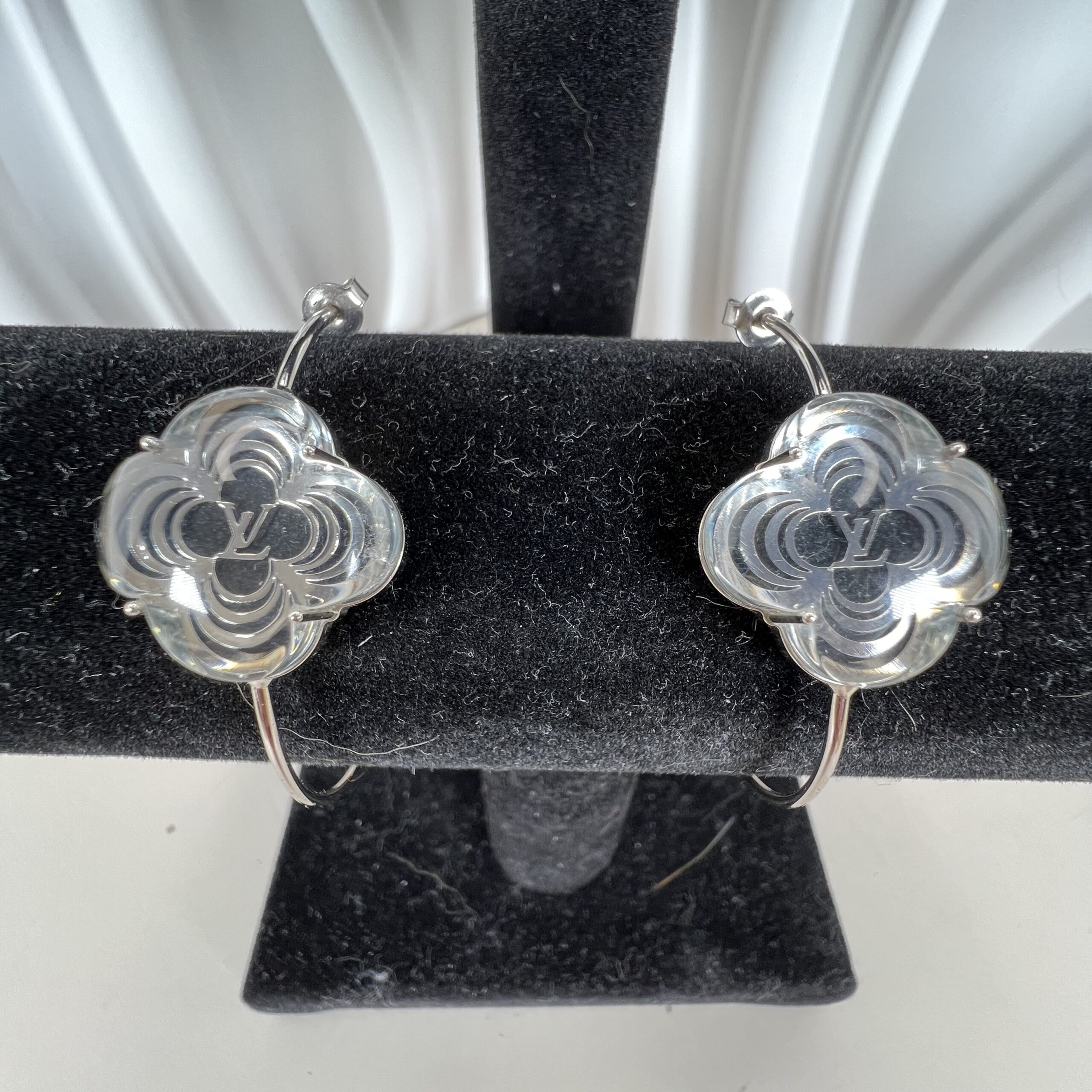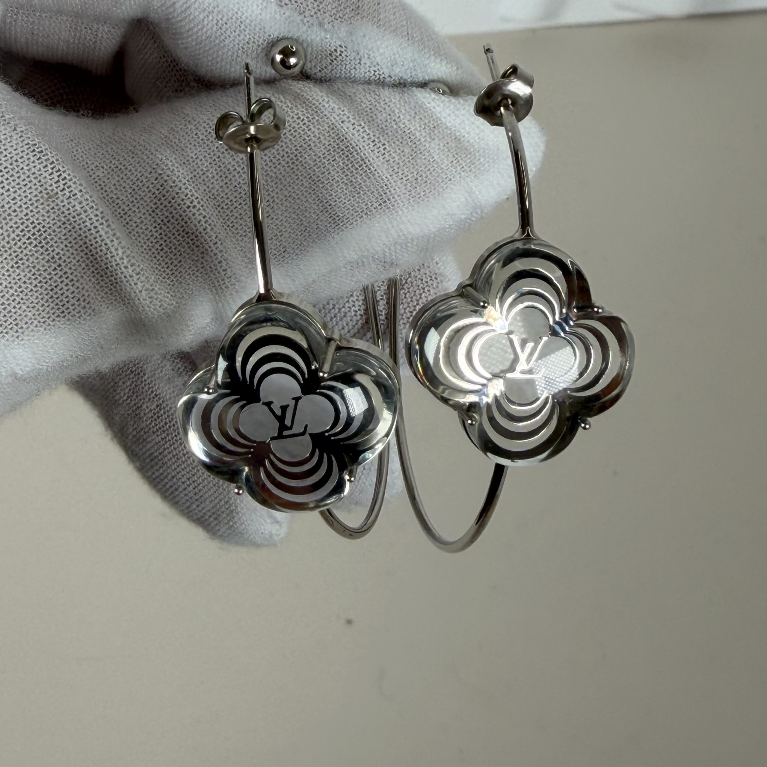 - Design Elements:Â Openwork quatrefoil flower with an integrated LV logo signature