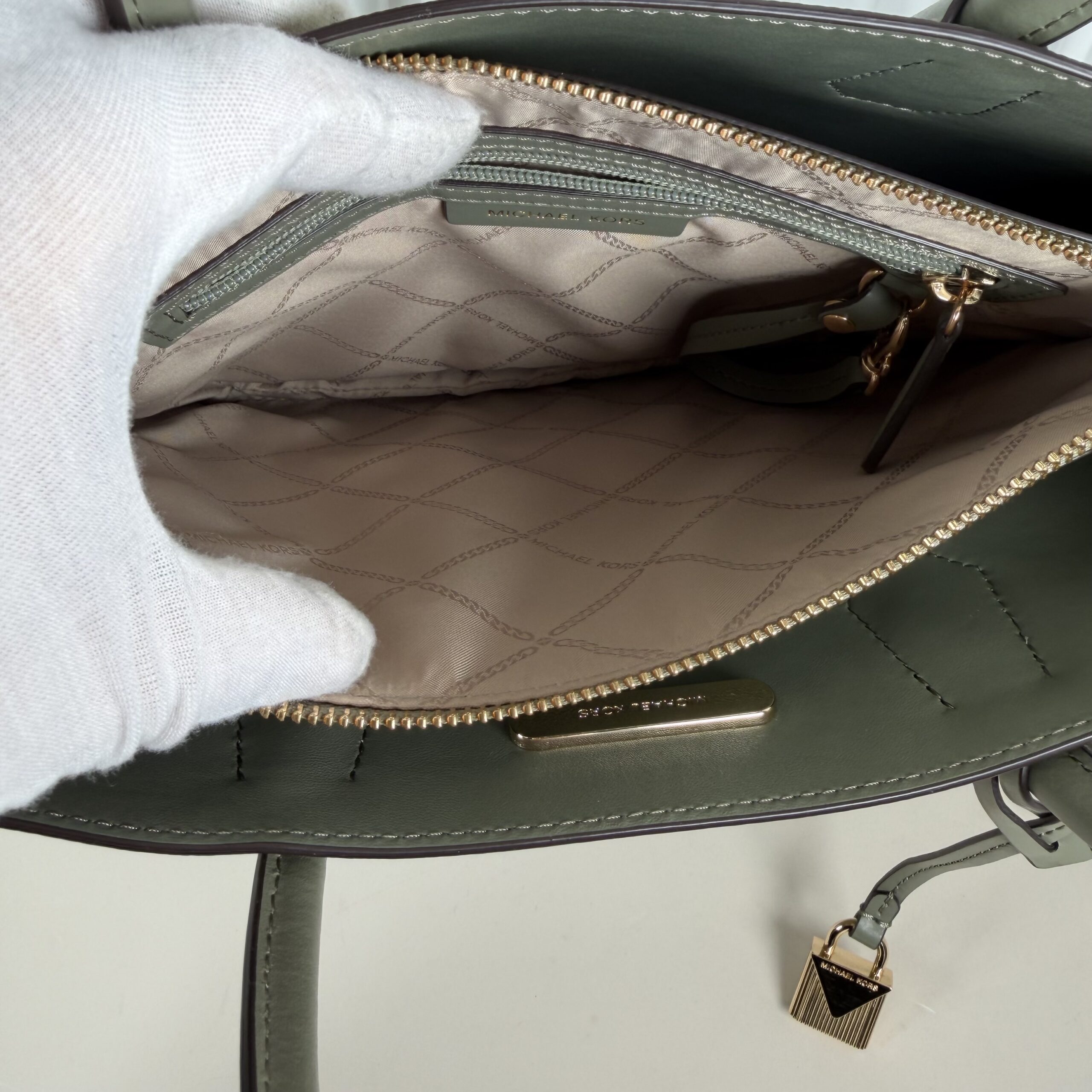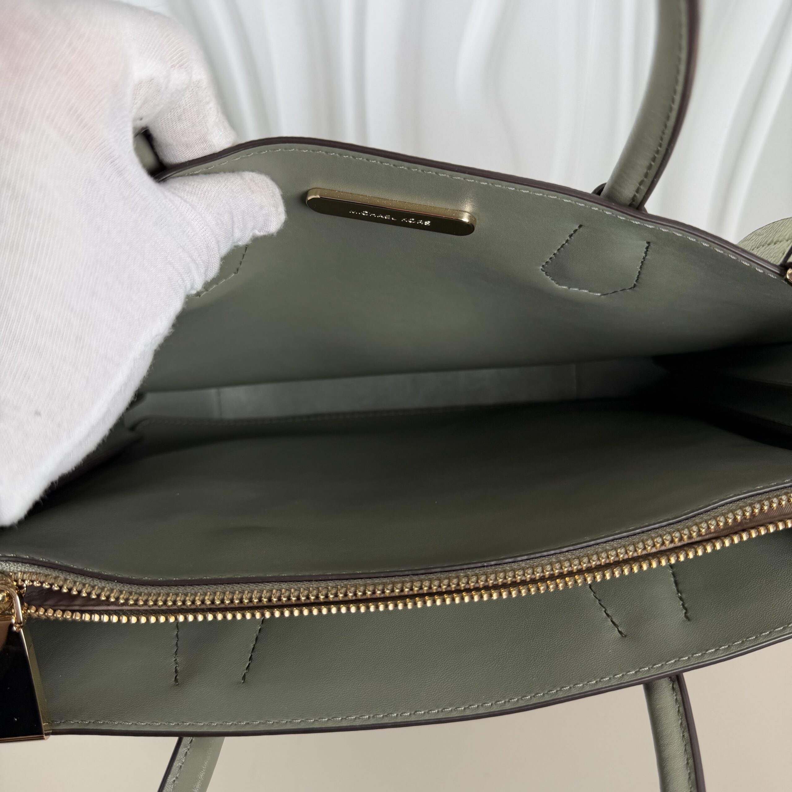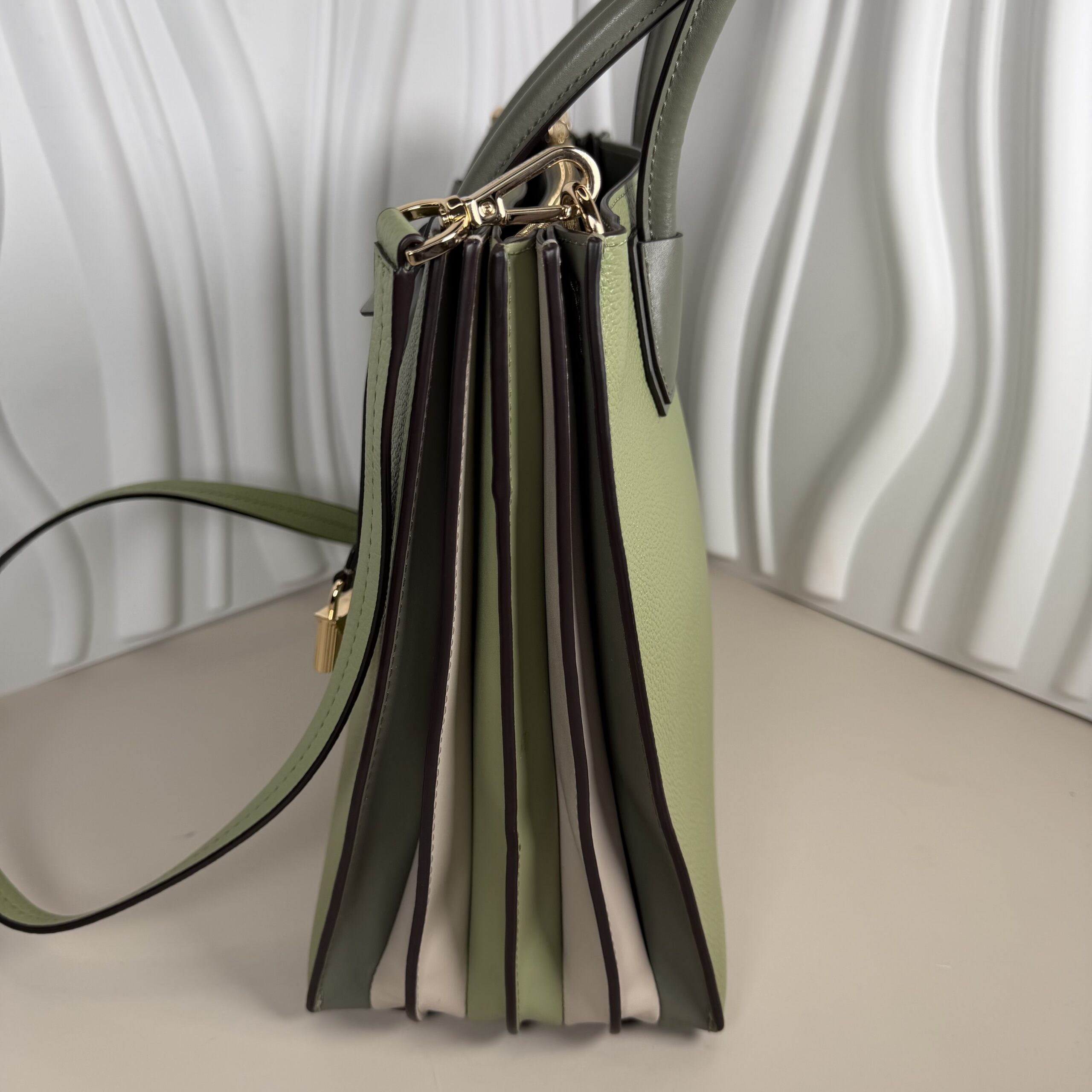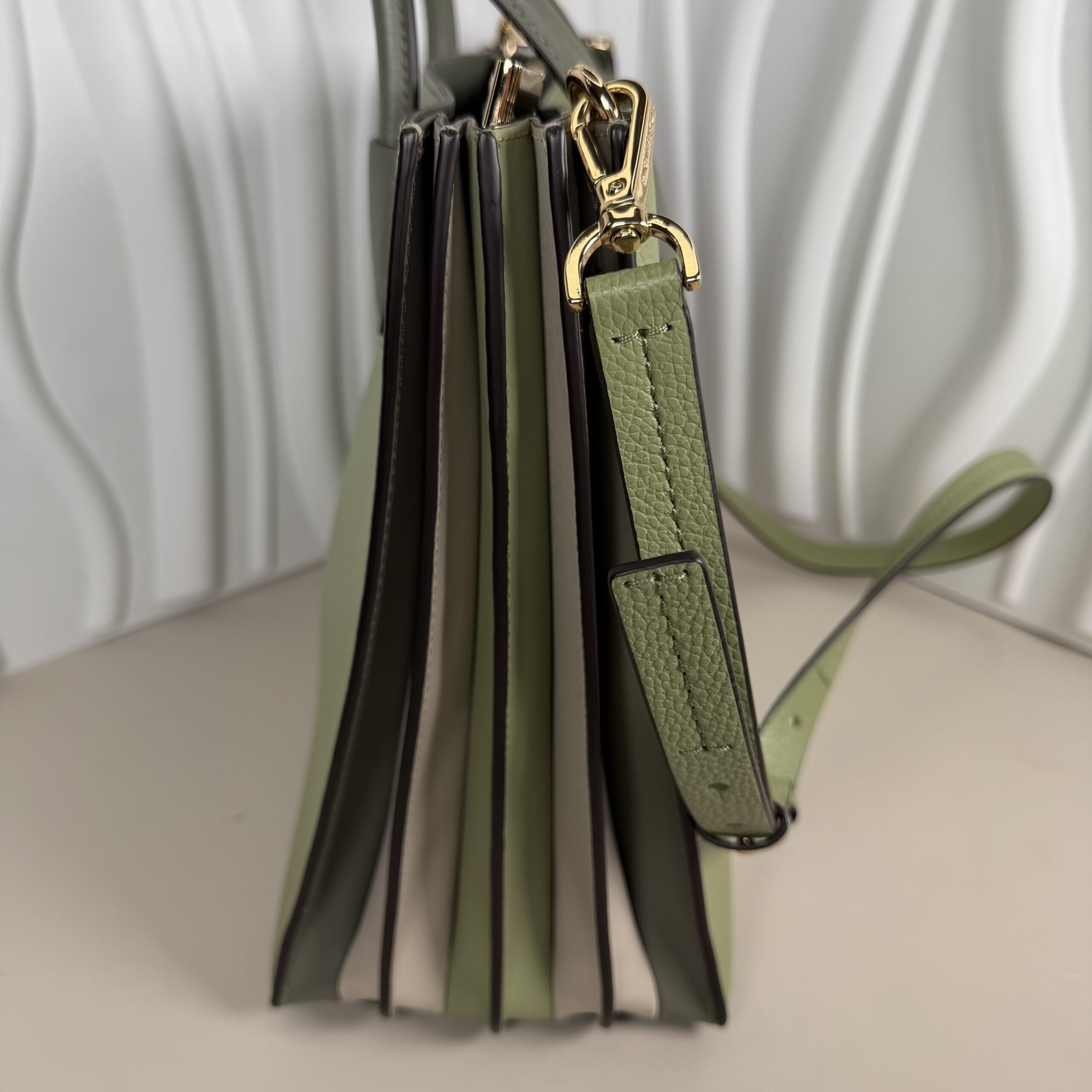 - Color:Â Light Sage (a muted, olive-toned green) with gold-tone hardware