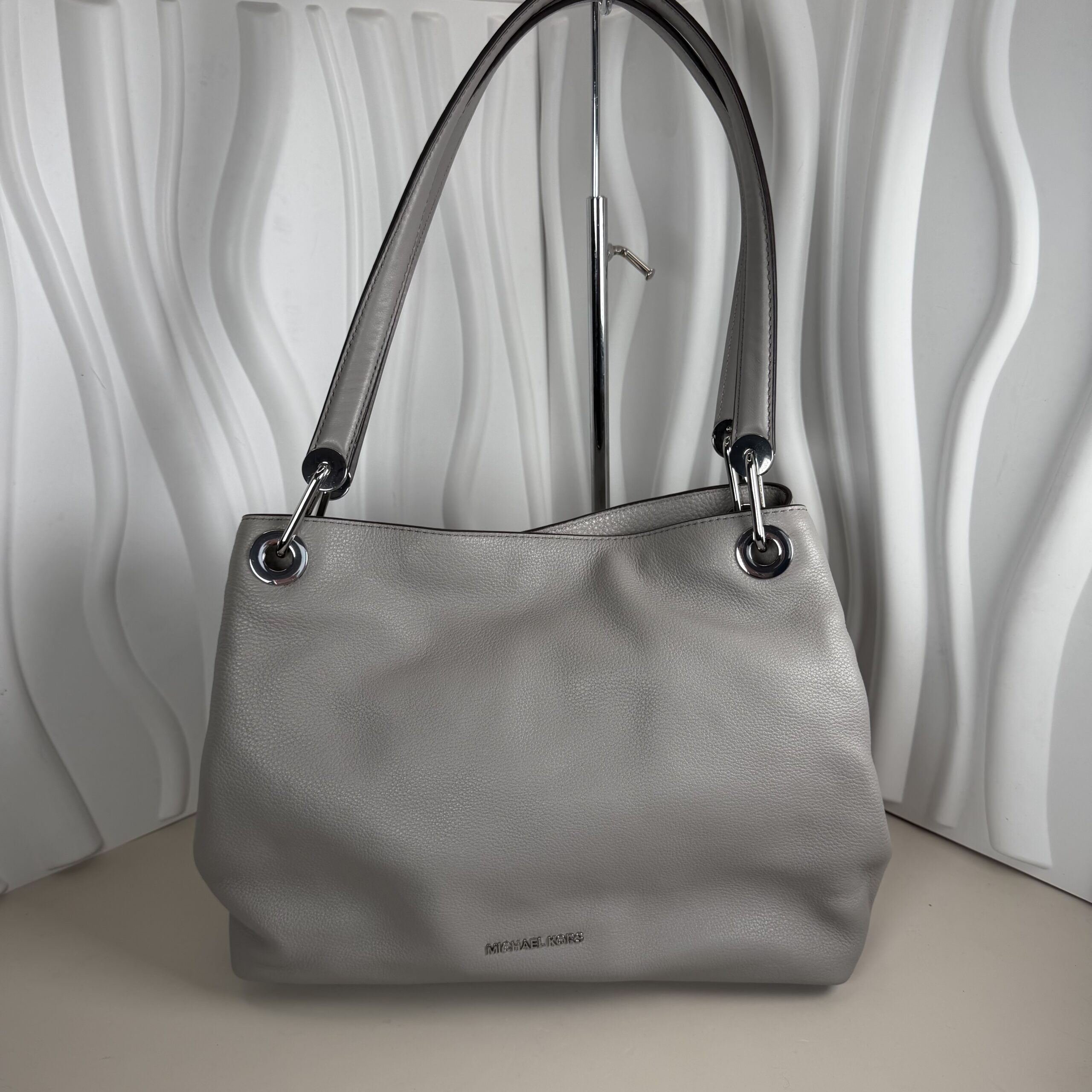 This is a description for a pre-owned Michael Kors Raven large shoulder tote, perfect for an online resale listing: