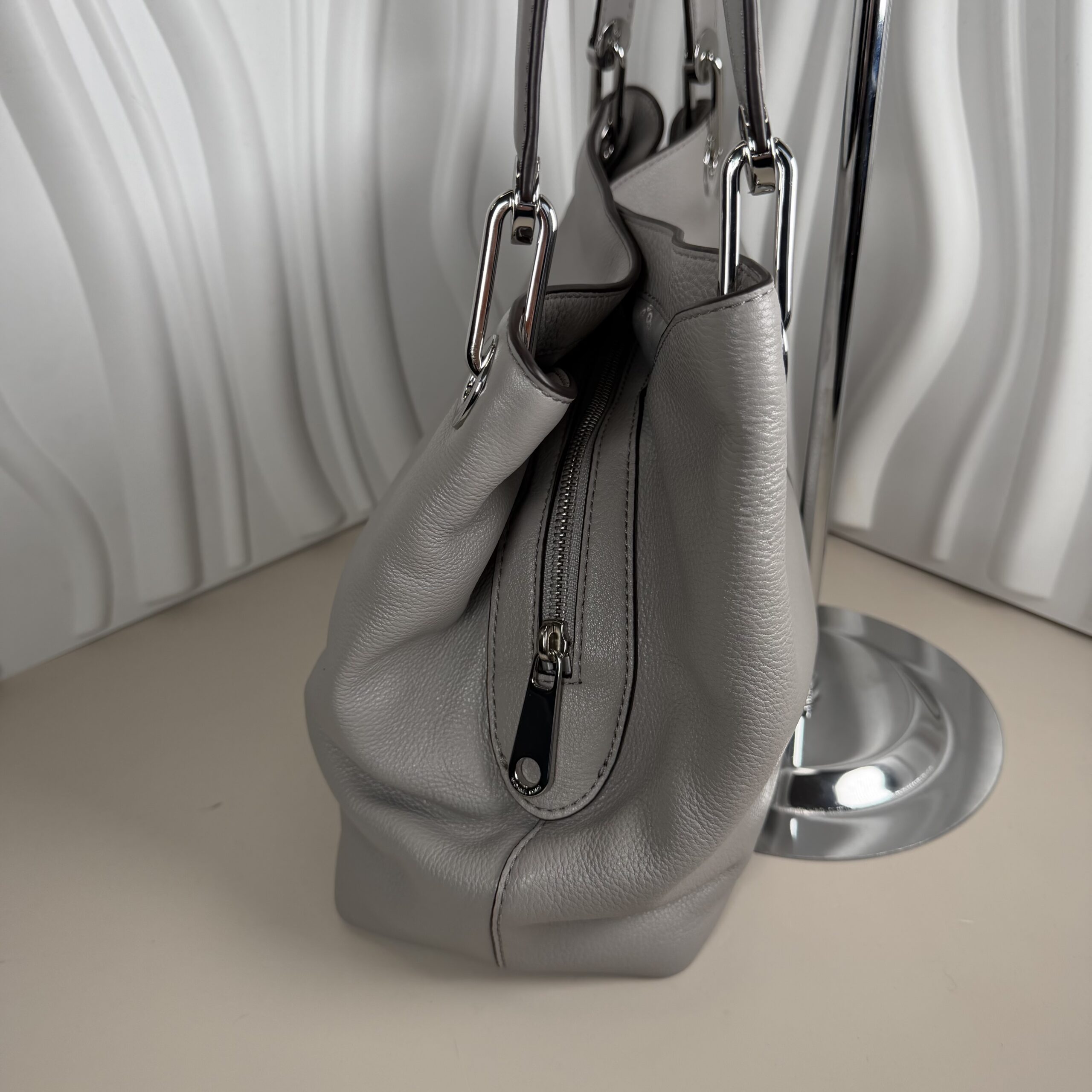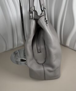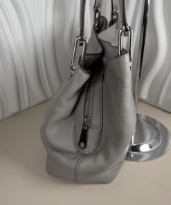 - Material:Â Crafted from high-quality pebbled (or hammered) leather in a sophisticated gray hue.Â