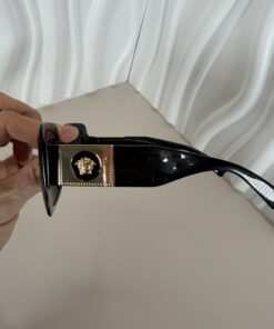 Make a bold statement with these authentic Versace sunglasses, a luxurious accessory that perfectly blends high fashion with everyday functionality. The classic square/rectangle shape and polished black frame offer a sleek, sophisticated look, while the iconic gold-tone Medusa emblem on the wide temples provides an unmistakable designer touch.