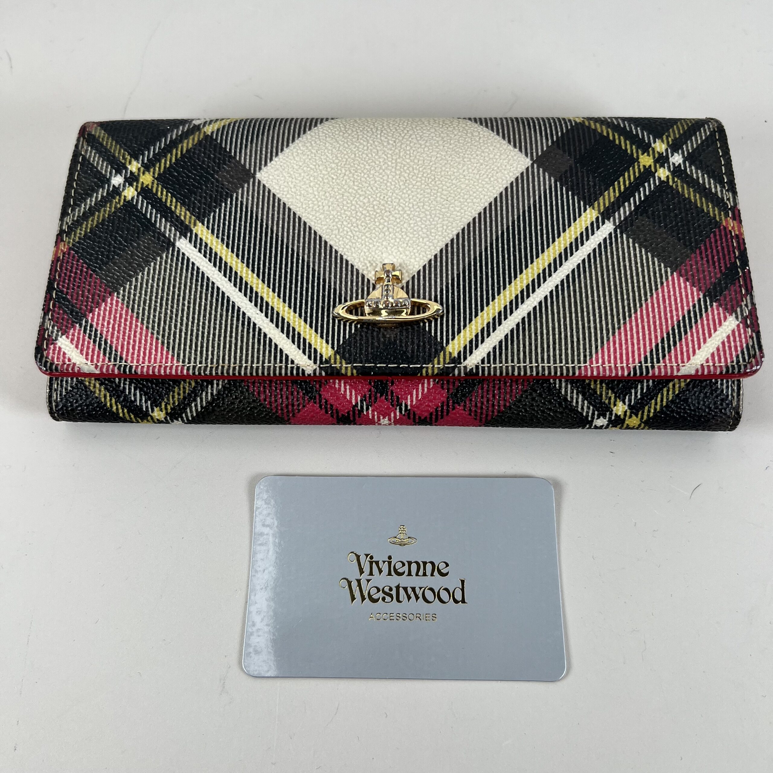 Authentic Vivienne Westwood Derby Classic Tartan Long Wallet – Multicolor Plaid
